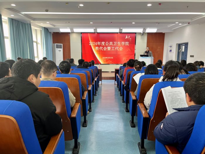 1月22日,公共卫生学院召开2024年“两代会”暨教职工大会,院党委书记马军成主持会议,院长王华作工作报告。