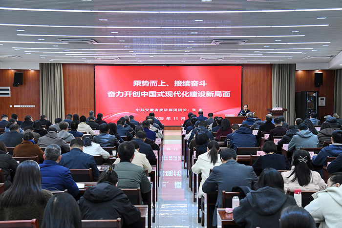 张彪紧紧围绕习近平总书记在党的二十届四中全会上的重要讲话精神和《中共中央关于制定国民经济和社会发展第十五个五年规划的建议》,以《乘势而上、接续奋斗,奋力开创中国式现代化建设新局面》为题,从“深刻认识全会的重大意义”,“准确把握‘十五五’时期在基本实现社会主义现代化进程中的重要地位”,深刻领会“十五五”时期经济社会发展的指导方针和主要目标,全面理解“十五五”时期经济社会发展的战略任务和重大举措,坚持和加强党的全面领导,凝聚起推进中国式现代化的磅礴力量等方面,紧密结合安徽省医学教育实际,对全会精神作了全面系统宣讲和深入解读阐释。