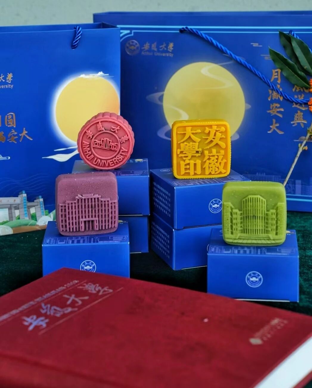 安徽师范大学也用六年的坚持,把月饼做成了“家的符号”。今年学校依旧推出专属文创月饼,将校园文化符号、校徽、校训精心融入传统月饼技艺,每一枚都做得精致又有温度。
