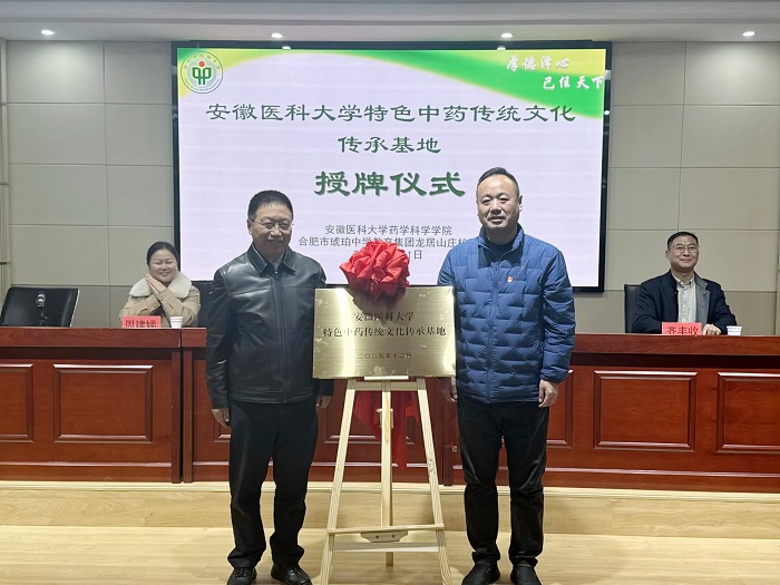 活动仪式上,药学科学学院中药教研室主任陈向涛与合肥市琥珀中学教育集团党委书记、校长王瞻权共同为“特色中药传统文化传承基地”揭牌。琥珀中学教育集团龙居山庄校区党支部书记、执行校长齐丰收代表学校,聘任药学科学学院中药教研室教师党支部书记马陶陶担任校区“健康副校长”。