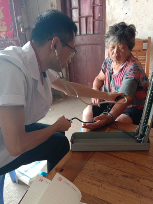 原来,王大爷患有严重的糖尿病、高血压,子女常年在外打工,日常看病十分不便。张治业驻村后不久,在给王大爷体检时发现,其空腹血糖25mmol/l,血压165/98mmhg,情绪很不稳定,烦躁,失眠,并伴有轻生念头。为此,张治业先给予对症治疗,定期到家为王大爷诊治,时不时还会同其聊聊天,在唠家常的过程中,不断对老人进行心理疏导。慢慢地,老人精神状态恢复了,血压血糖也逐步稳定,生存质量明显提高。两年的驻村时间,张治业已记不清为老人诊治过多少次,但看到老人重拾生活的信心后,他感觉一切努力和付出都值得。