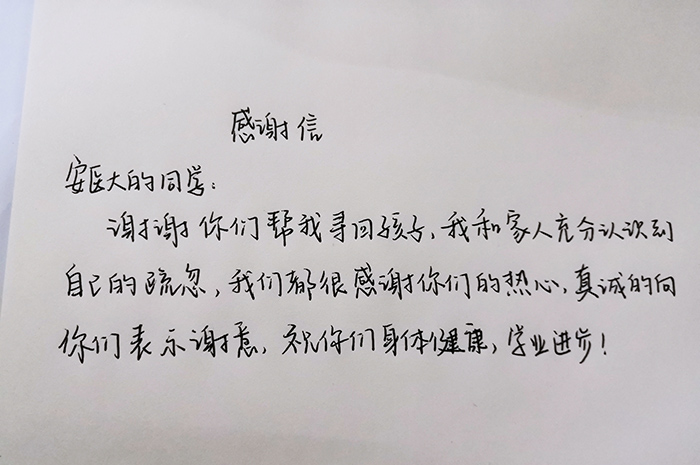 为了了解女童更多的身份信息,三位同学再次向其提问。得知女孩在合肥市阜阳路幼儿园就读这一信息后,她们随即通过网络搜寻其幼儿园相关的信息,顺利找到了园长联系方式并与其联系上。随后,园长及时联系到女孩父母,并通知三名同学与女孩家长在约定好地点见面。看到孩子安然无恙地站在自己面前时,急得满头大汗的女孩家长激动地与三名同学握手,向他们表示诚挚的谢意,并夸赞道:“你们青年大学生真是新时代的活雷锋。”