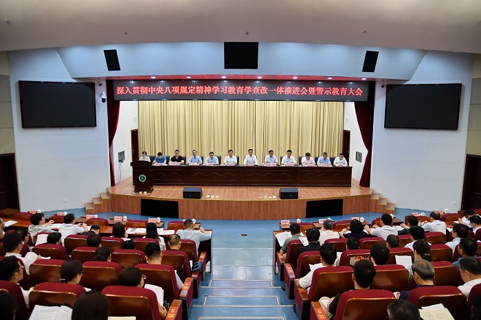 6月5日,学校召开深入贯彻中央八项规定精神学习教育学查改一体推进会暨警示教育大会。学习教育省委第六督导组组长金维加到会指导,校领导、党委常委出席会议。校党委书记王琦作总结讲话,校党委副书记徐朝阳主持会议。