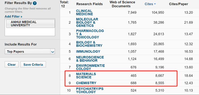 3月15日,科睿唯安公布ESI最新统计数据,我校 “材料科学”(Materials Science)和“化学”(Chemistry) 两个学科首次进入ESI全球排名前1%,学校学科建设取得新突破。至此,我校已有临床医学、分子生物学与遗传学、药理学与毒理学、生物与生物化学、免疫学、神经科学与行为学、环境科学与生态学、社会科学总论、精神病学与心理学、材料科学、化学共11个ESI全球排名前1%学科,在安徽省属高校中位列首位,全省高校中位列第二。