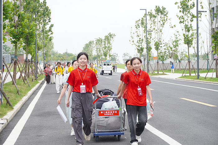 据了解,在学校的统一部署下,多部门协同联动、提前规划,从新生接站到进校报到,学校工作人员和学生志愿者们热心耐心做好迎新各项工作。校内开通“迎新专线”接驳车,方便新生快速转运行李至宿舍区;校外设置“即停即走”临时车位,配合专人引导,提升接送效率。迎新路线关键节点均设有报到综合服务台,配备矿泉水、雨衣、校园地图等物资,并安排老师和志愿者提供路线指引、手续协助及行李搬运等一站式服务。
