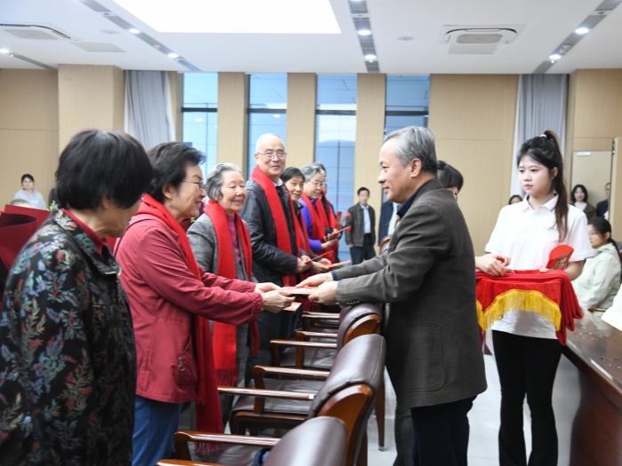 翁建平代表学校向各位老寿星致以最诚挚的祝福和崇高的敬意,向长期以来为学校教育教学、医疗卫生事业奠基立业、辛勤耕耘的老同志们表示衷心感谢,并为老寿星们赠送了精心准备的寿礼。鲜艳的围巾如秋日暖阳,传递着学校对老同志健康长寿、安享晚年的美好祝福。翁建平表示,历经多年积淀与奋进,今天的新丽18luck已成长为办学水平更高、学术影响更大、更具代表性的高水平大学,是一代代安医人共同守护、携手创建的共同家园。老同志们是这个家园里最宝贵的财富,在几十年的职业生涯中用智慧和汗水,为学校的学科建设、人才培养、医疗服务打下了坚实的基础,为地方医疗卫生事业发展作出了不可磨灭的贡献。