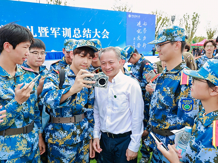 “未来的日子里,你们会遇到许多志同道合的伙伴,也可能与观点迥异者交锋。请记住:真正的智慧,诞生于包容差异的对话中;真正的勇敢,是认清生活的真相后依然热爱生活;真正的成长,是即便不理解也尊重别人的选择,是退一步海阔天空的豁达,是允许并接纳不同习惯、不同观念、不同选择的共存。”翁建平语重心长地说道。他希望广大新生在大学校园里,不仅要学习书本上的知识,更要学会如何自理,如何自立,如何与人相处,如何融入社会,将“碰撞”化为养分,成为既有专业深度又有人文温度的“完整的人”。